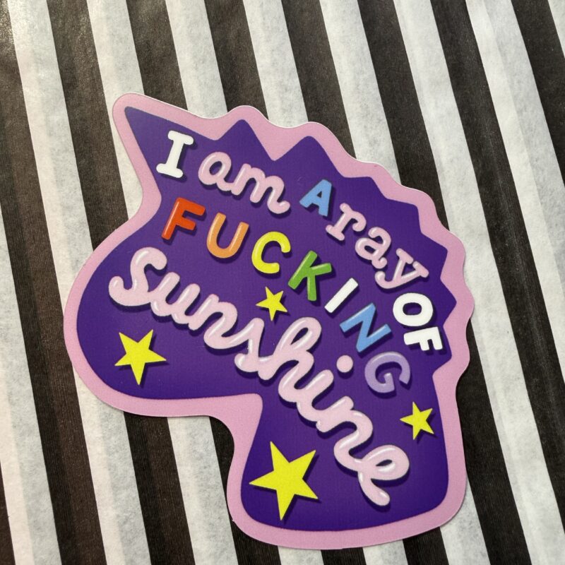 I am a ray for fucking sunshine klistermærke. 8×9 cm mat plastoverflade.