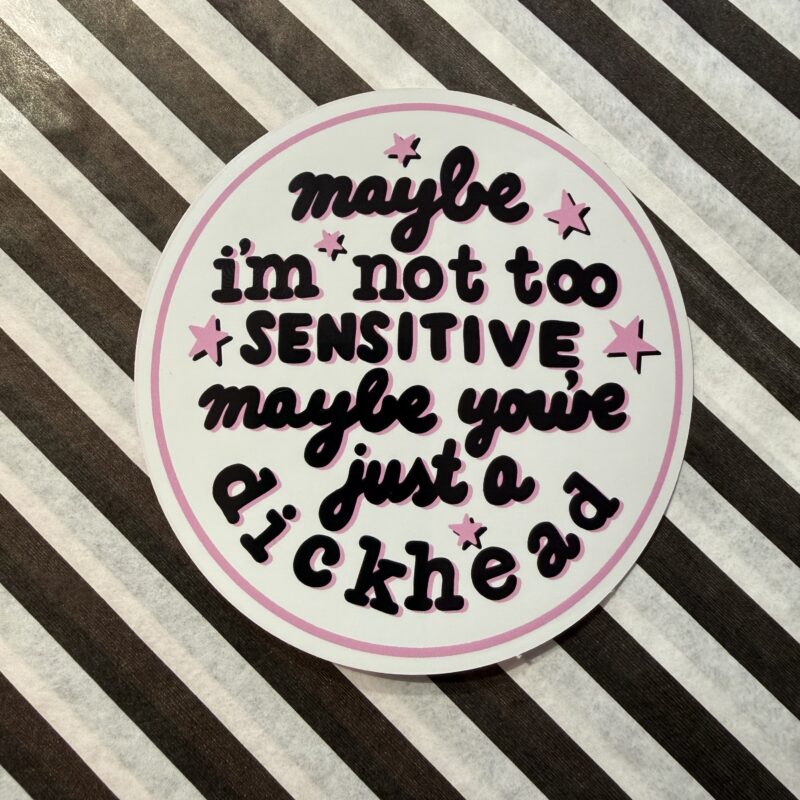 Maybe I’m not too sensitive klistermærke. 8x8cm mat plastoverflade.