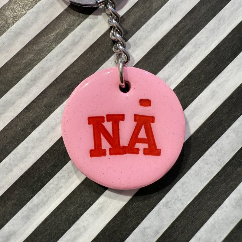 Nå stor lyserød nøglering.