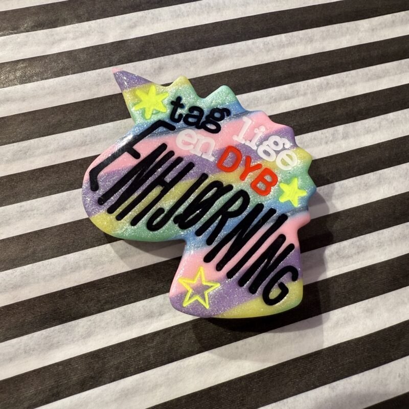 Tag lige en dyb enhjørning. Stribet pastel. Broche.