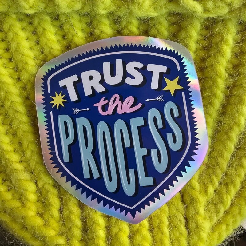 Trust the process klistermærke, hologram effekt og glat overflade.